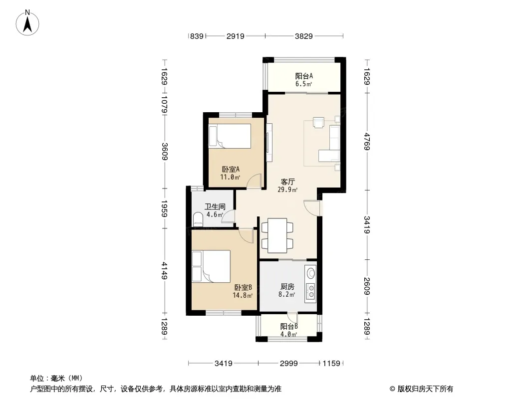 户型齐全,主打户型方正,明卫,客厅朝南三居