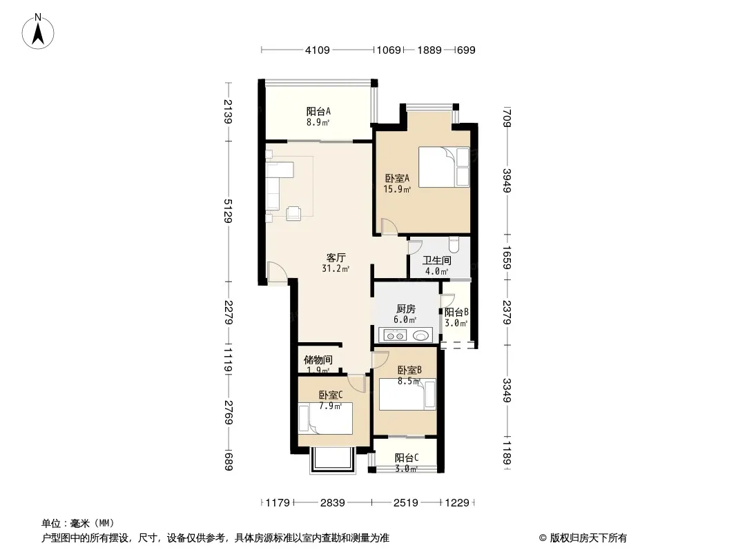 户型齐全,主打户型方正,明厨,客厅朝南三居