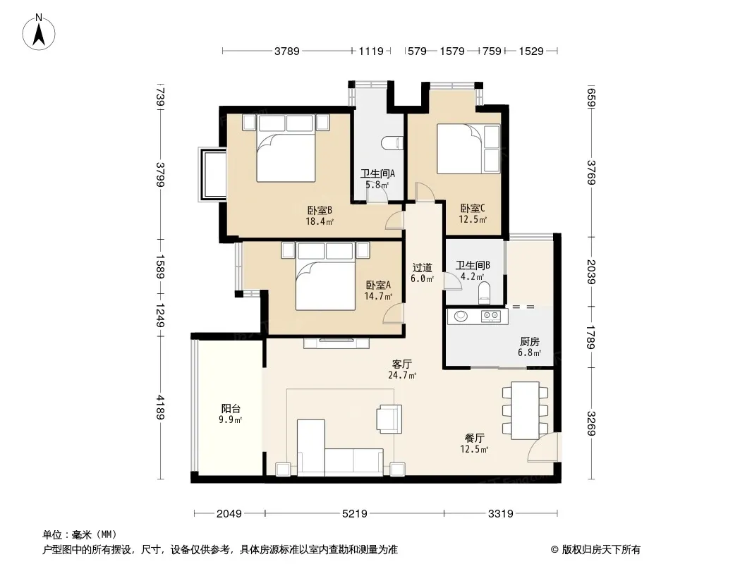 户型齐全,主打明厨,独立衣帽间三居
