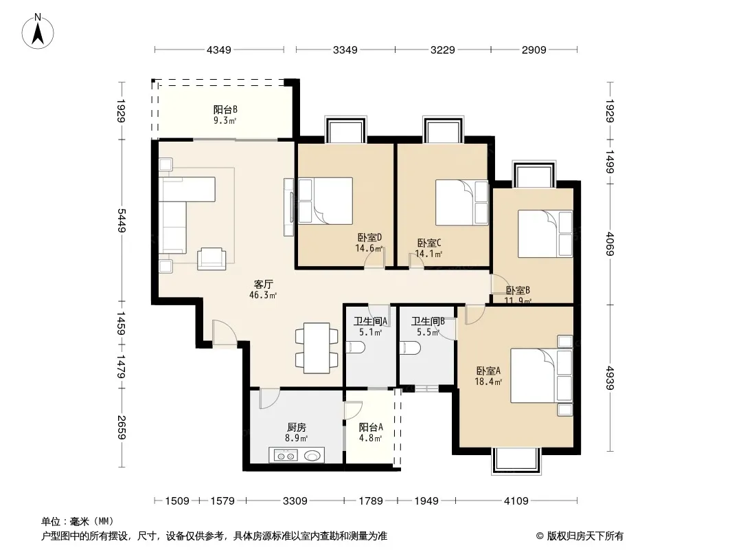 天府名居金沙江苑 4室2厅 北