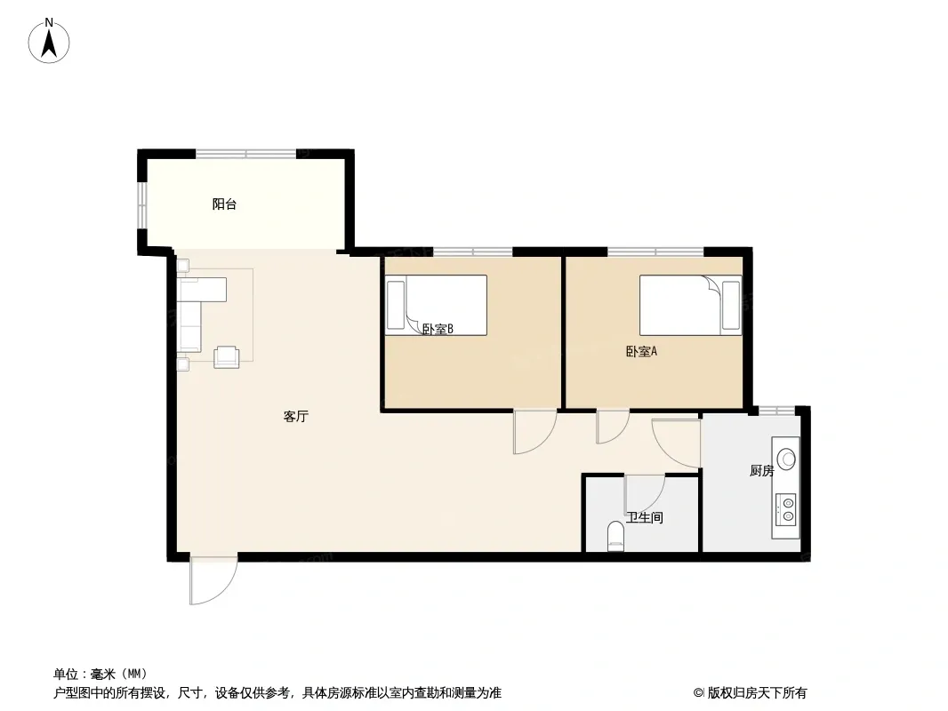 秀舍天涯 2室1厅 东南