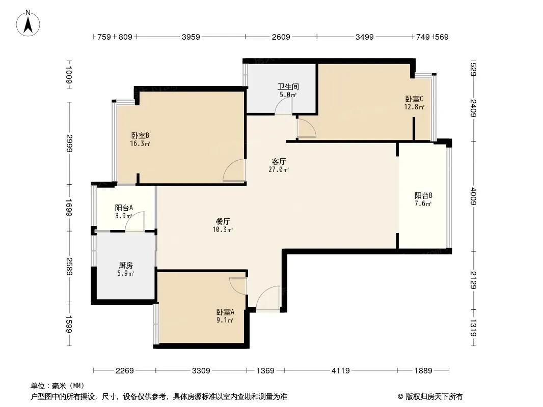 户型齐全,主打户型方正,明卫,明厨,双阳台三居