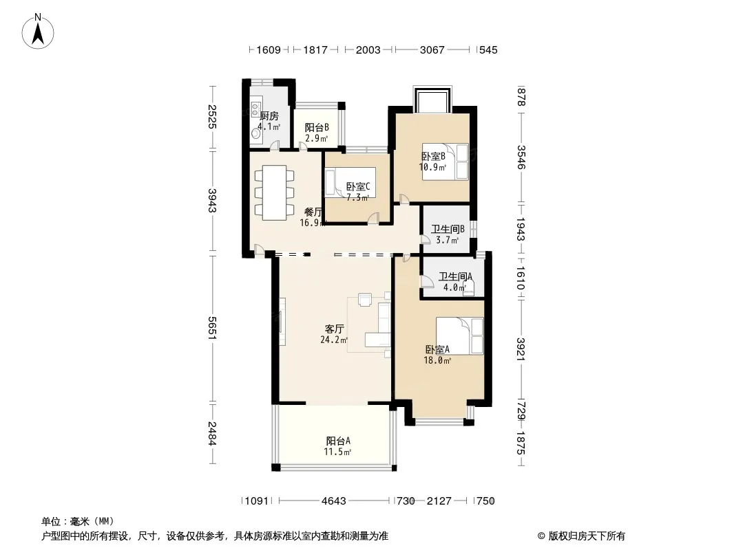 户型齐全,主打户型方正,明卫,明厨,双阳台三居