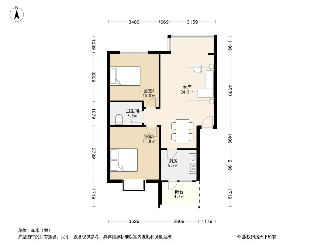 户型齐全,主打客厅朝南,双阳台三居