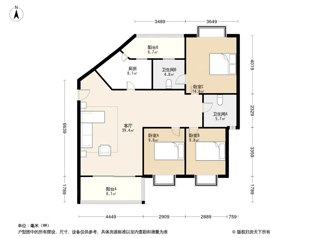 户型齐全,主打明卫,双阳台,主卧朝南三居