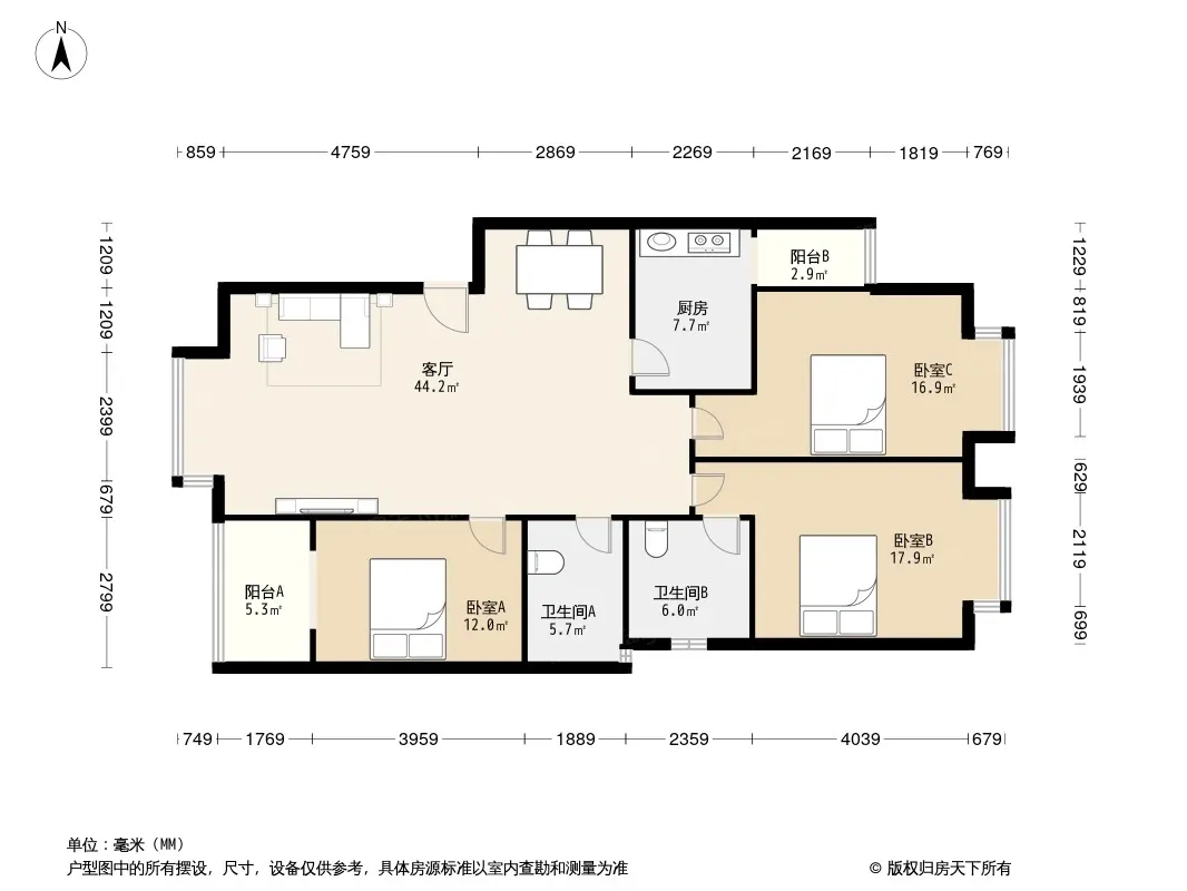 户型齐全,主打明卫三居