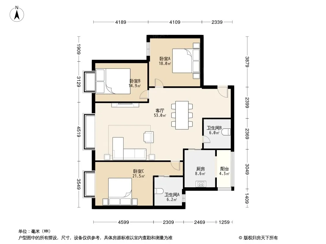 户型齐全,主打明卫三居