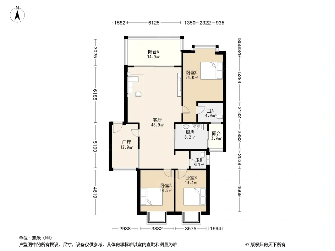 户型齐全,主打明卫,客厅朝南,双阳台,主卧朝南三居