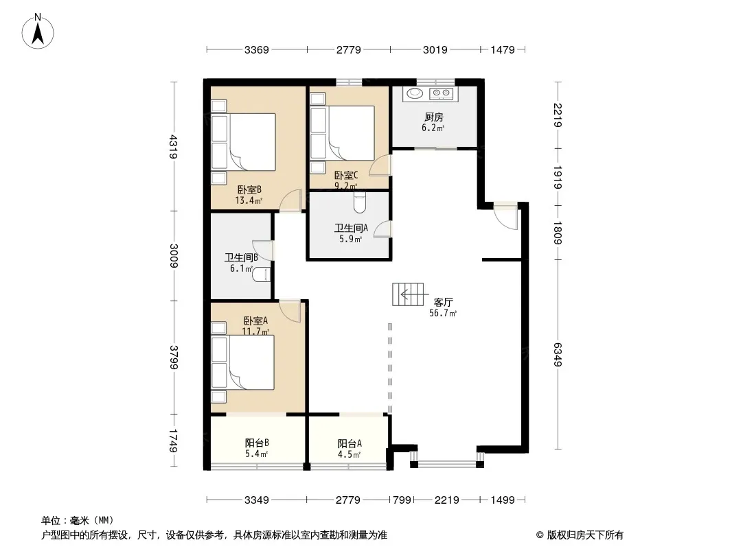 户型齐全,主打户型方正,明卫,客厅朝南三居