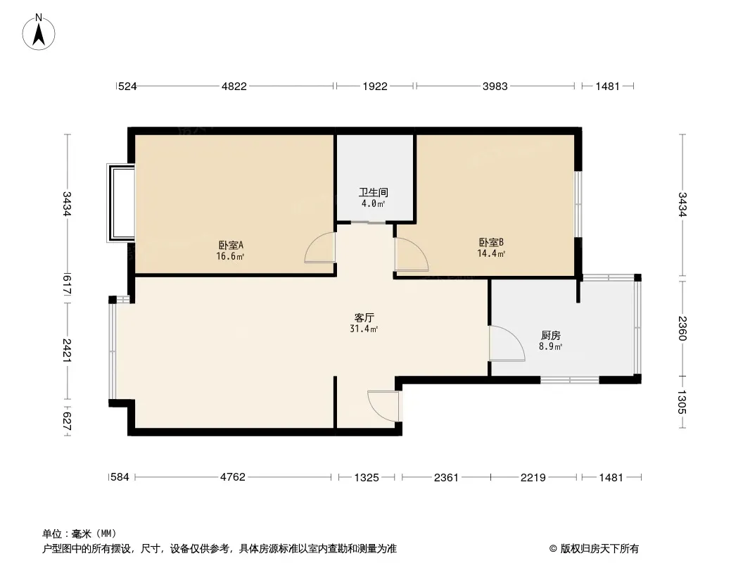 户型齐全,主打明厨,客厅朝南二居