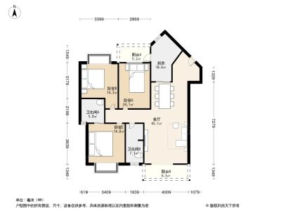 户型齐全,主打明卫,双阳台三居