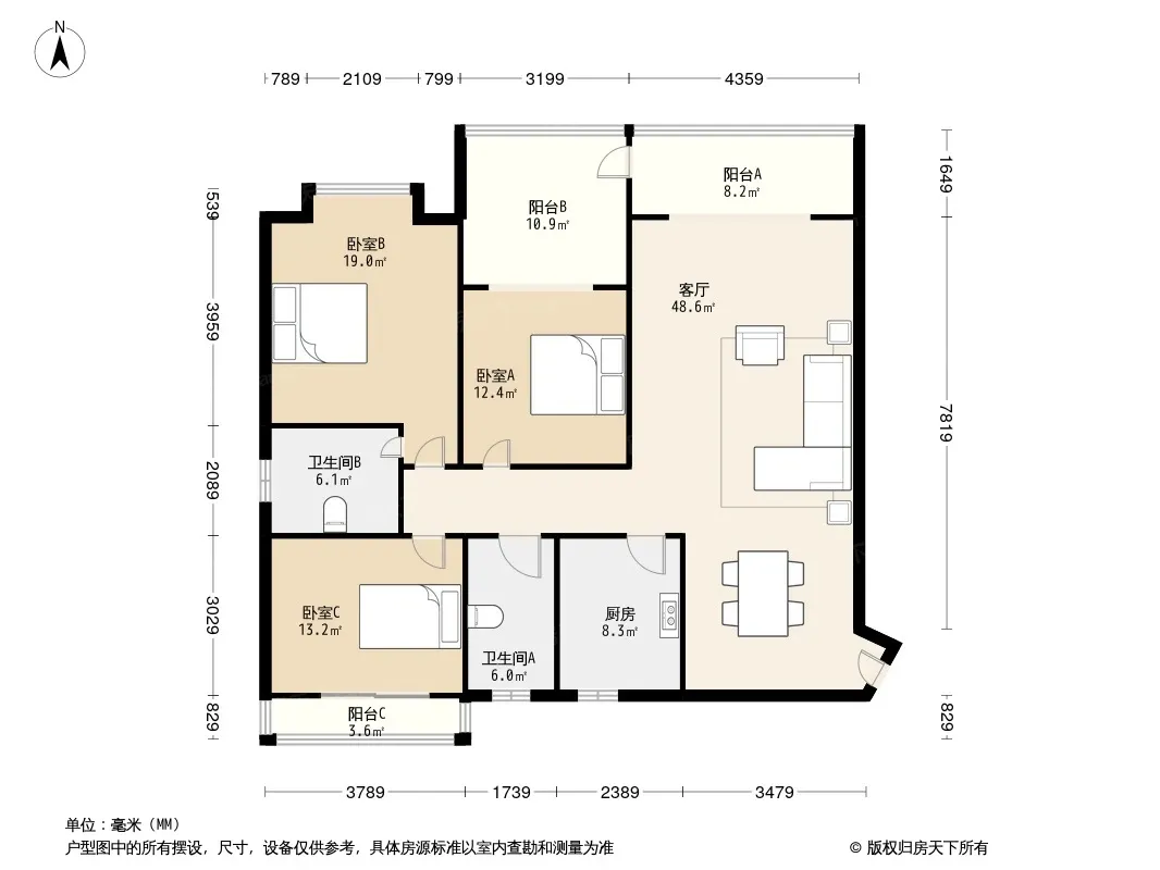 户型齐全,主打明卫,双阳台,双卧朝南三居