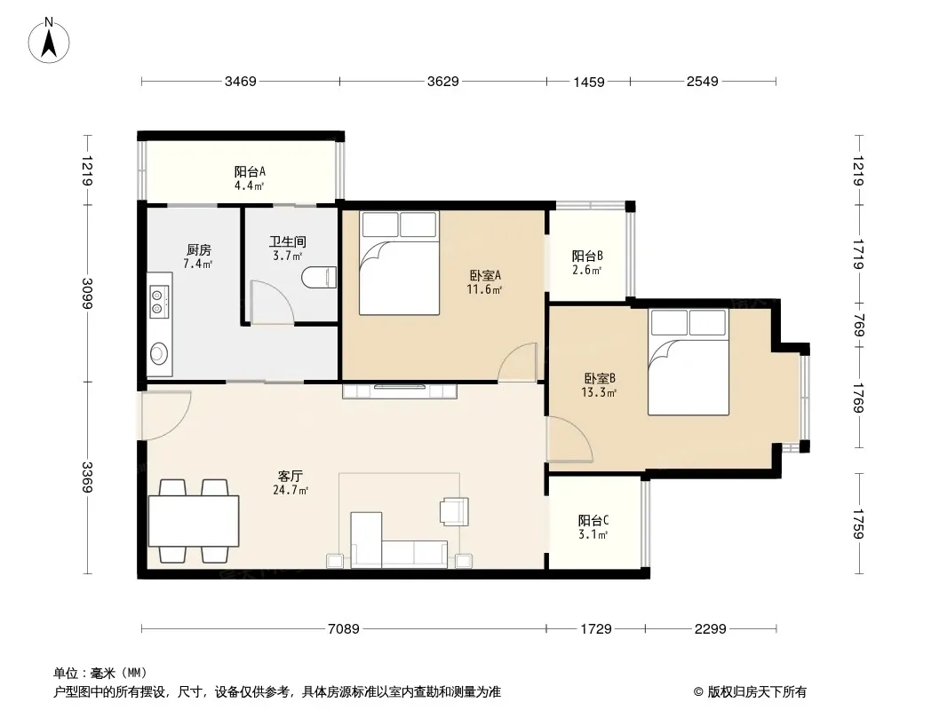 户型齐全,主打户型方正,双阳台二居