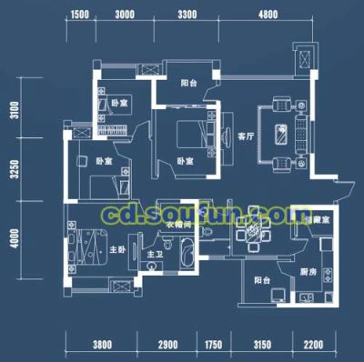 户型齐全,主打户型方正,明卫,客厅朝南,双阳台三居