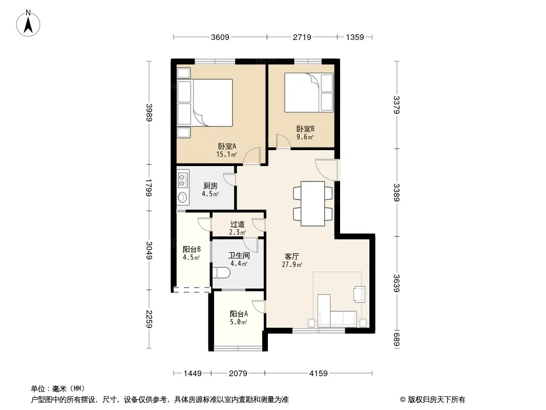 户型齐全,主打客厅朝南,双阳台二居