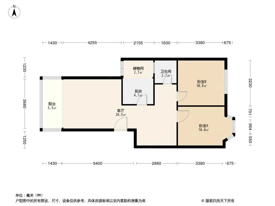 宏得紫竹苑 2室1厅 东南