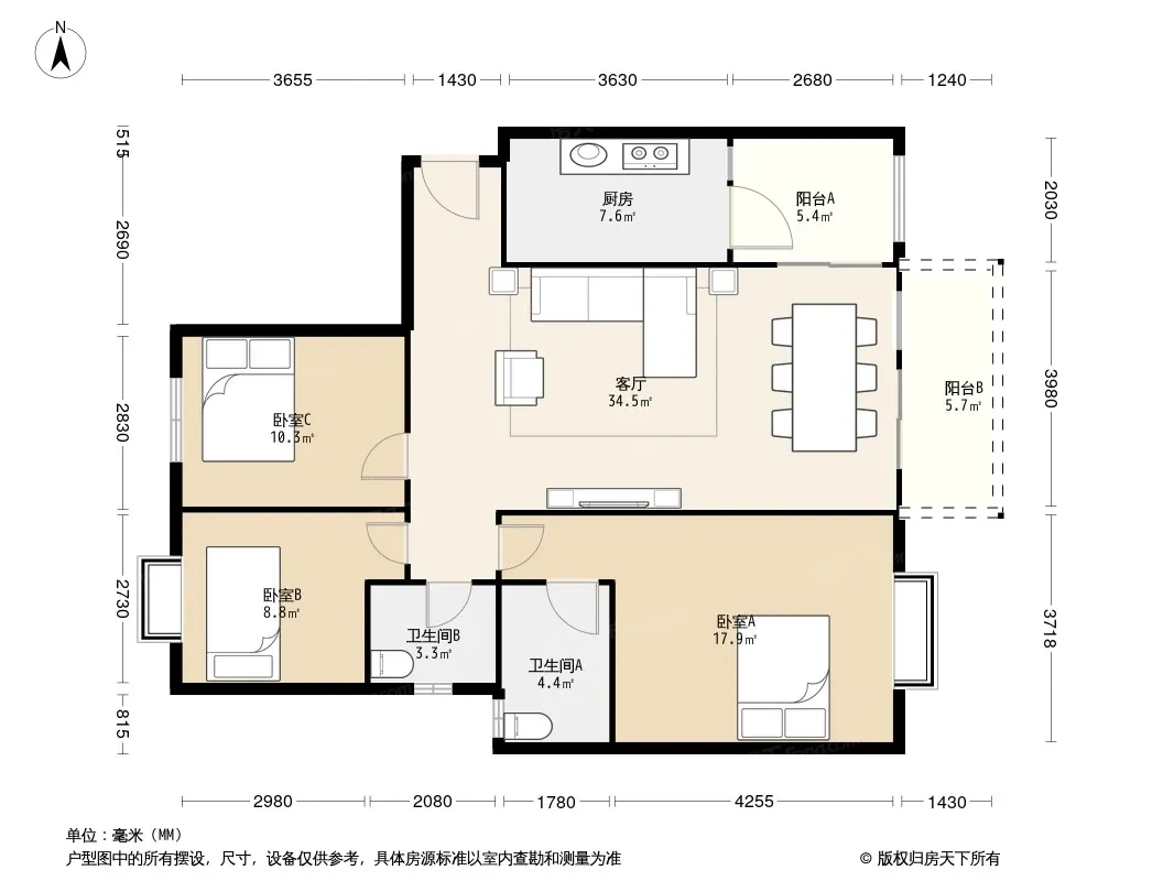 依云 3室2厅 南 北