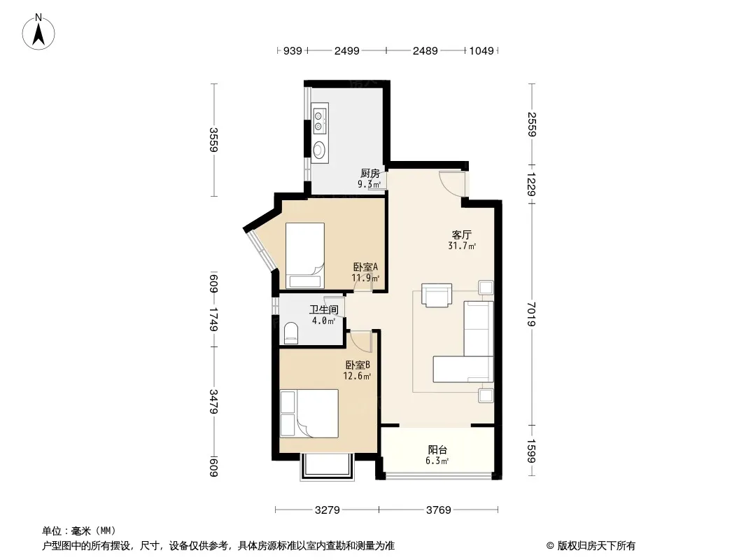 户型齐全,主打户型方正,主卧朝南一居