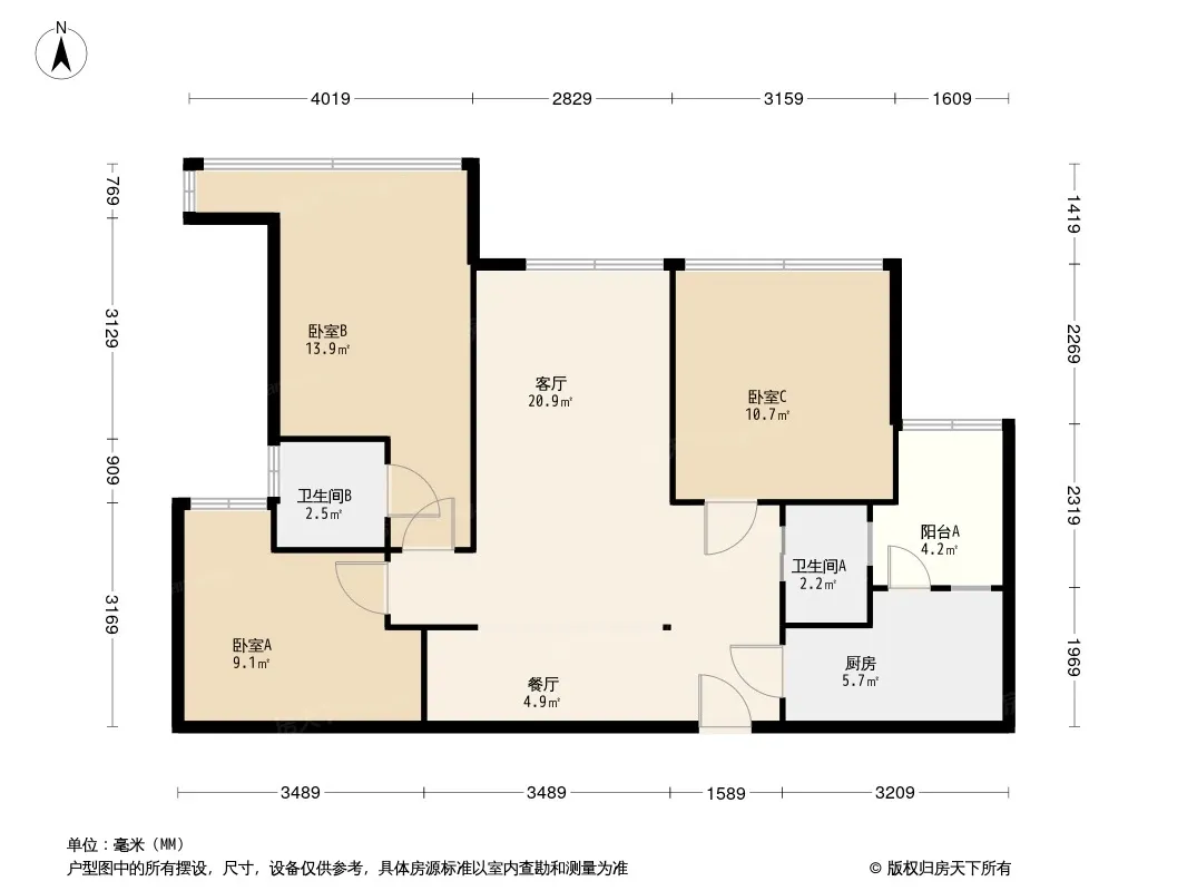 户型齐全,主打户型方正,动静分离,主卧套间,L型厨房三居
