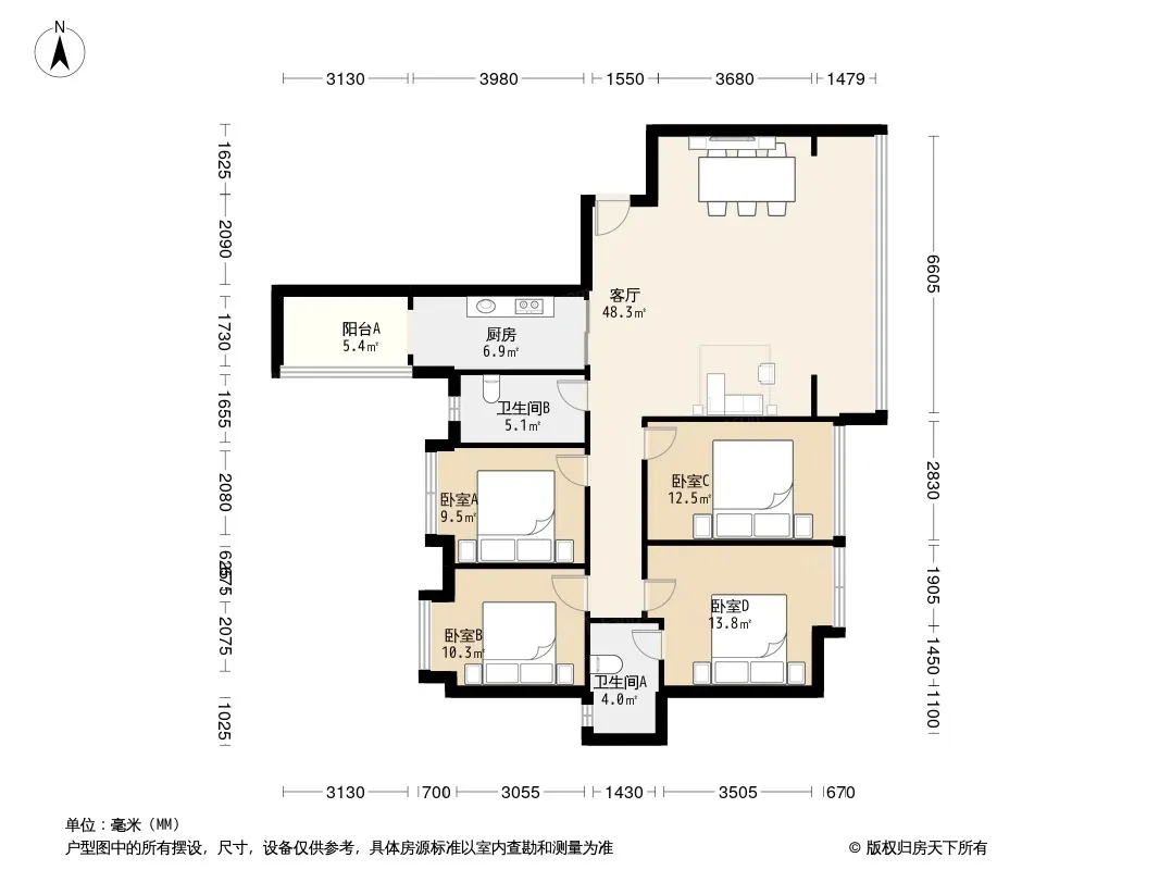 保利紫荆花语 4室2厅 南