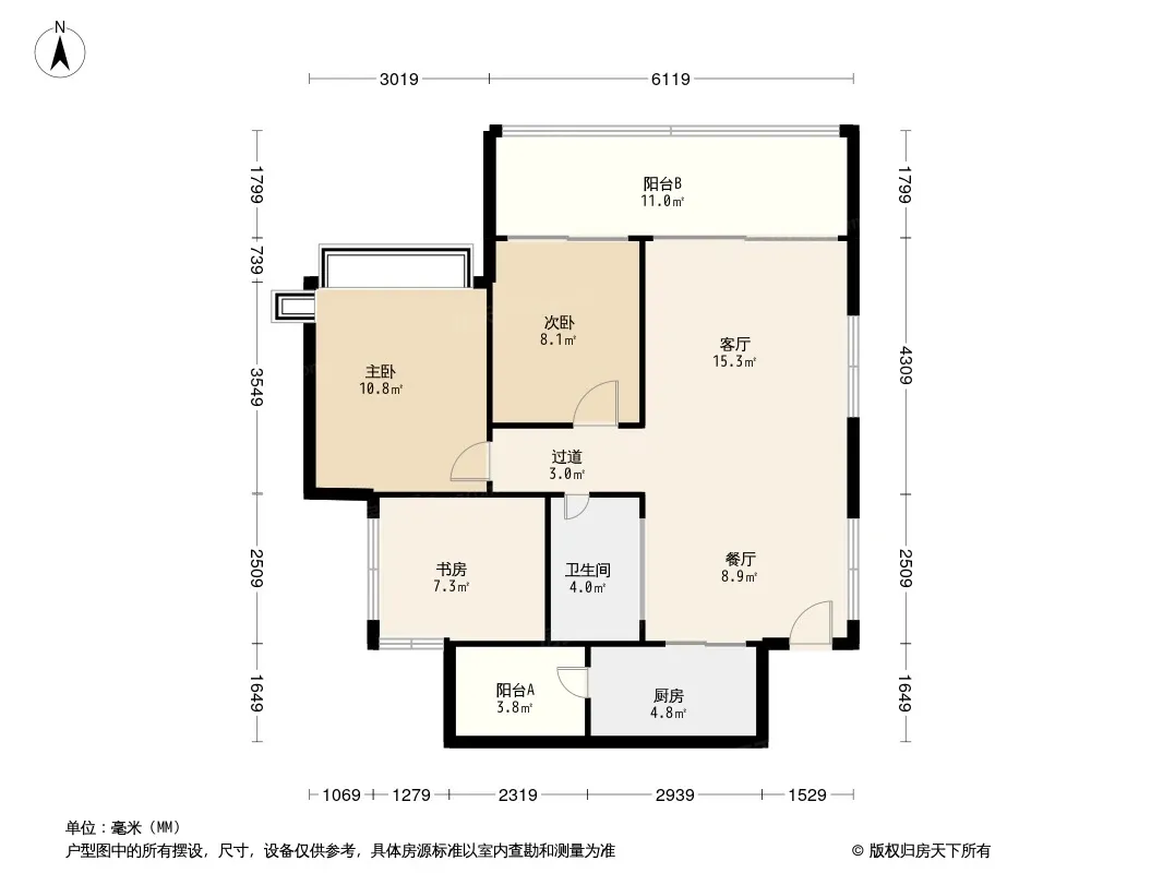 麓府 3室2厅 东北