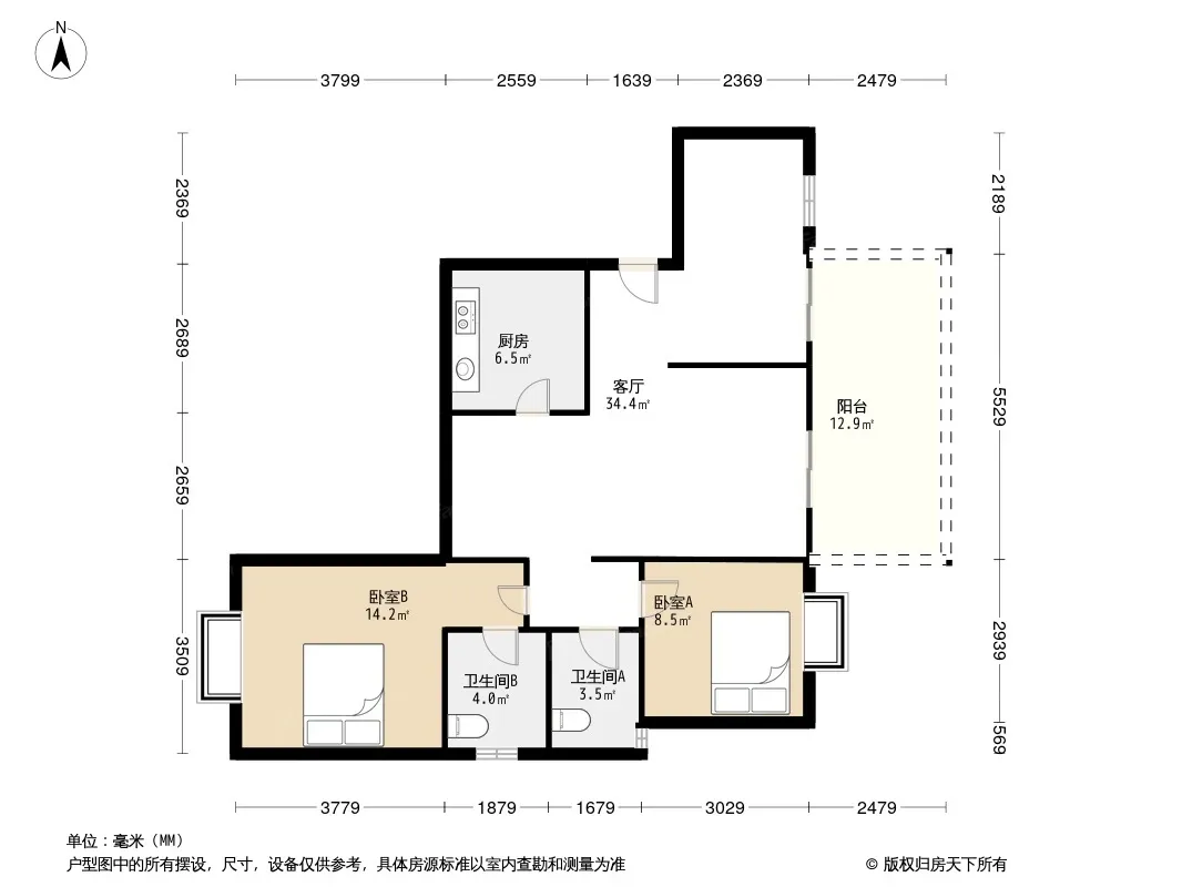 户型齐全,主打户型方正,明卫,独立衣帽间,客厅朝南,双阳台三居