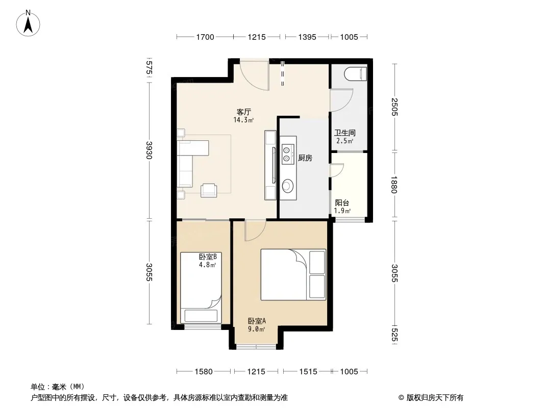 户型齐全,主打客厅朝南一居