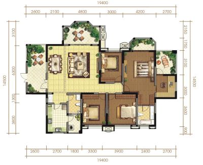 神仙树大院一期户型主要有104平-176平的明卫,明厨,客厅朝南,全明格局的三居 、155平-375平的双阳台,主卧朝南的四居 、60平-122平的明卫的二居 。