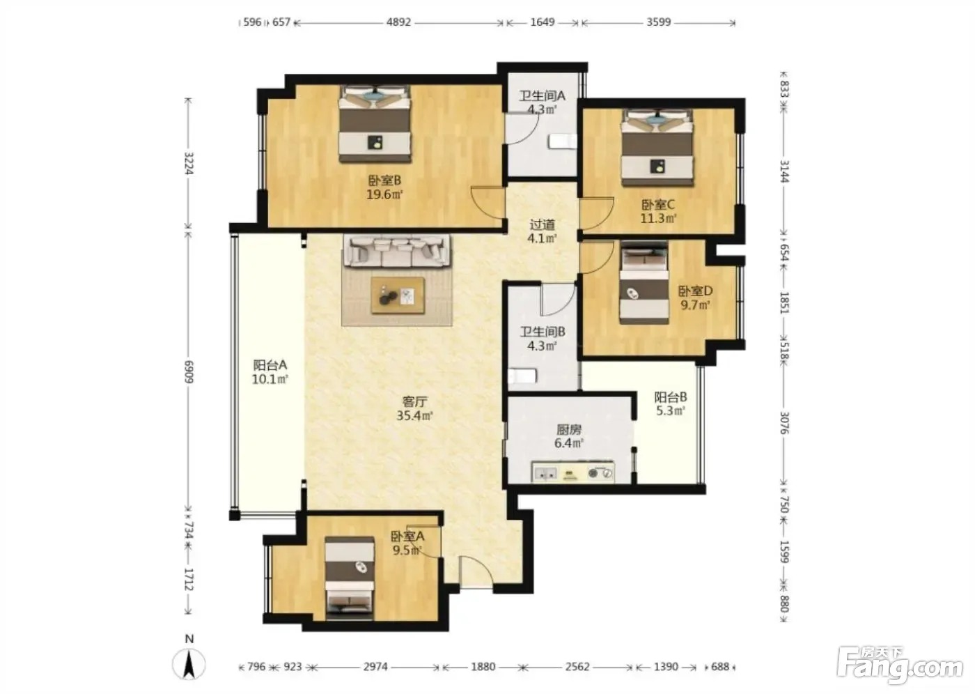 首开龙湖紫宸二组团 4室2厅 东南