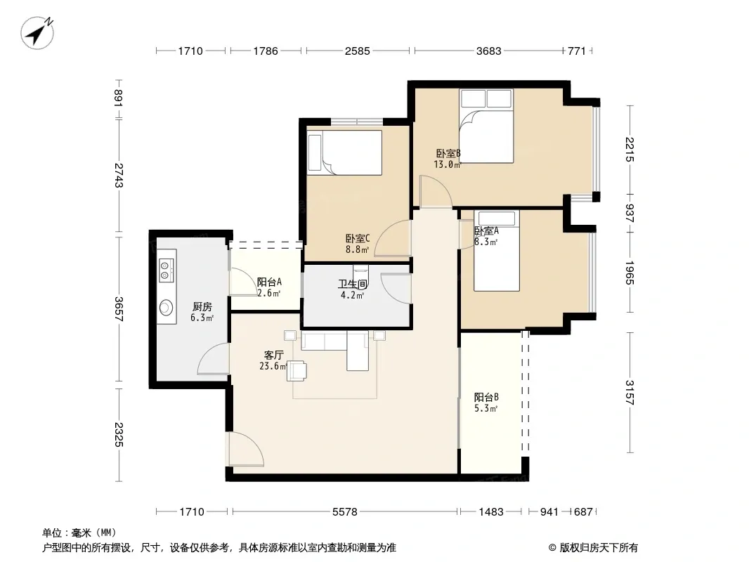 户型齐全,主打双阳台,双卧朝南,主卧朝南三居