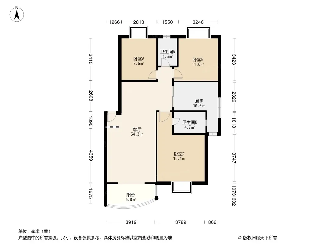 户型齐全,主打户型方正,明卫,明厨,客厅朝南,主卧朝南三居