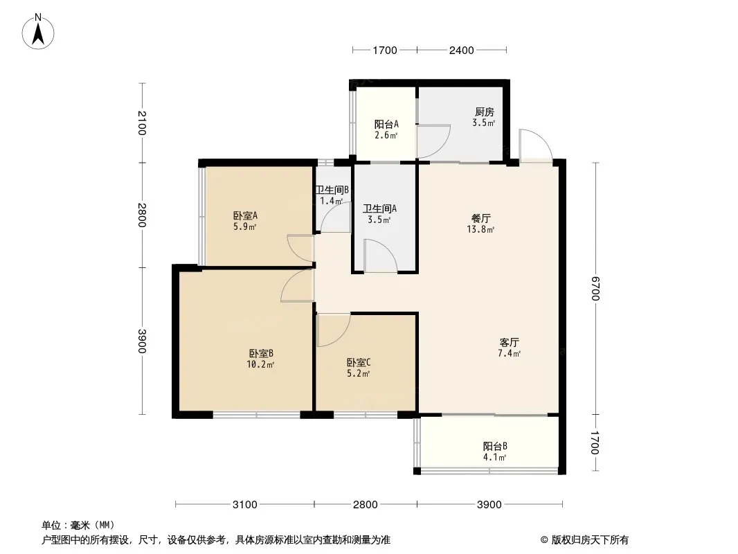 天来汇景 3室1厅 南
