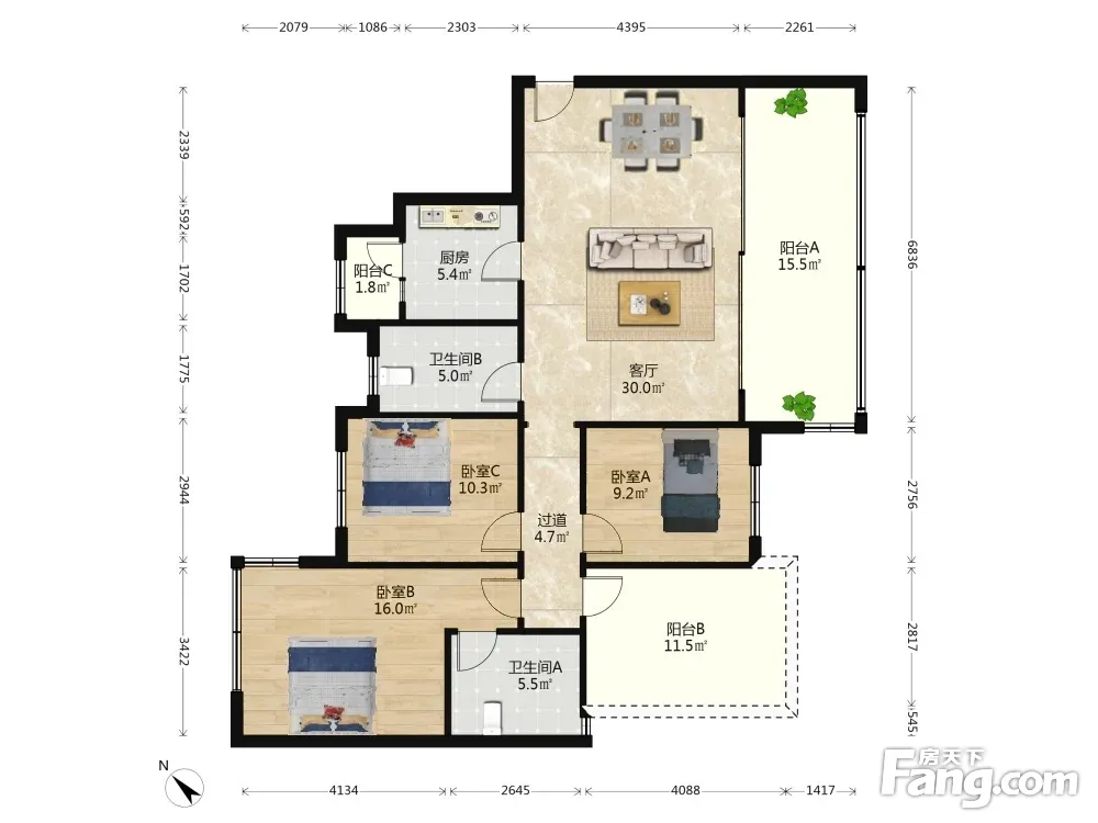 西派城A区 3室1厅 东南