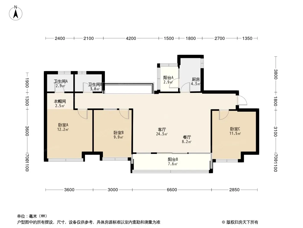 户型齐全,主打干湿分离,双阳台三居