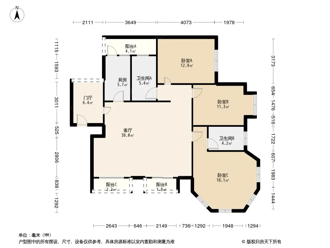 *获取完整户型报告,同时会有免费语音讲解服务