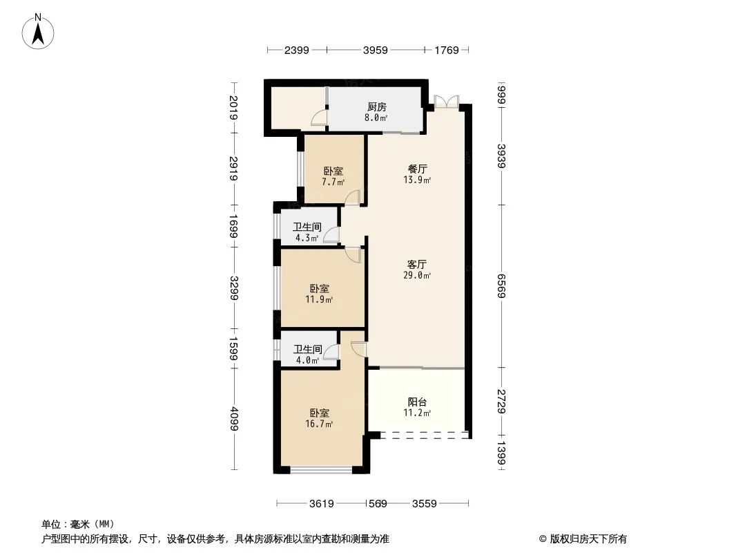 户型齐全,主打全明格局,户型方正三居