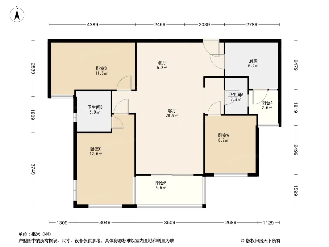 龙湖听蓝湾二期 3室2厅 东
