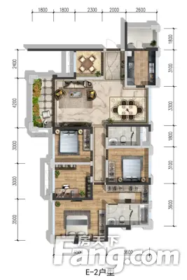 户型齐全,主打户型方正,主卧带卫,大面宽阳台四居