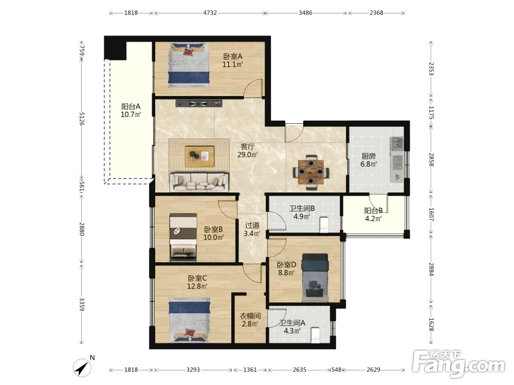 阳光城檀府 4室2厅 西南