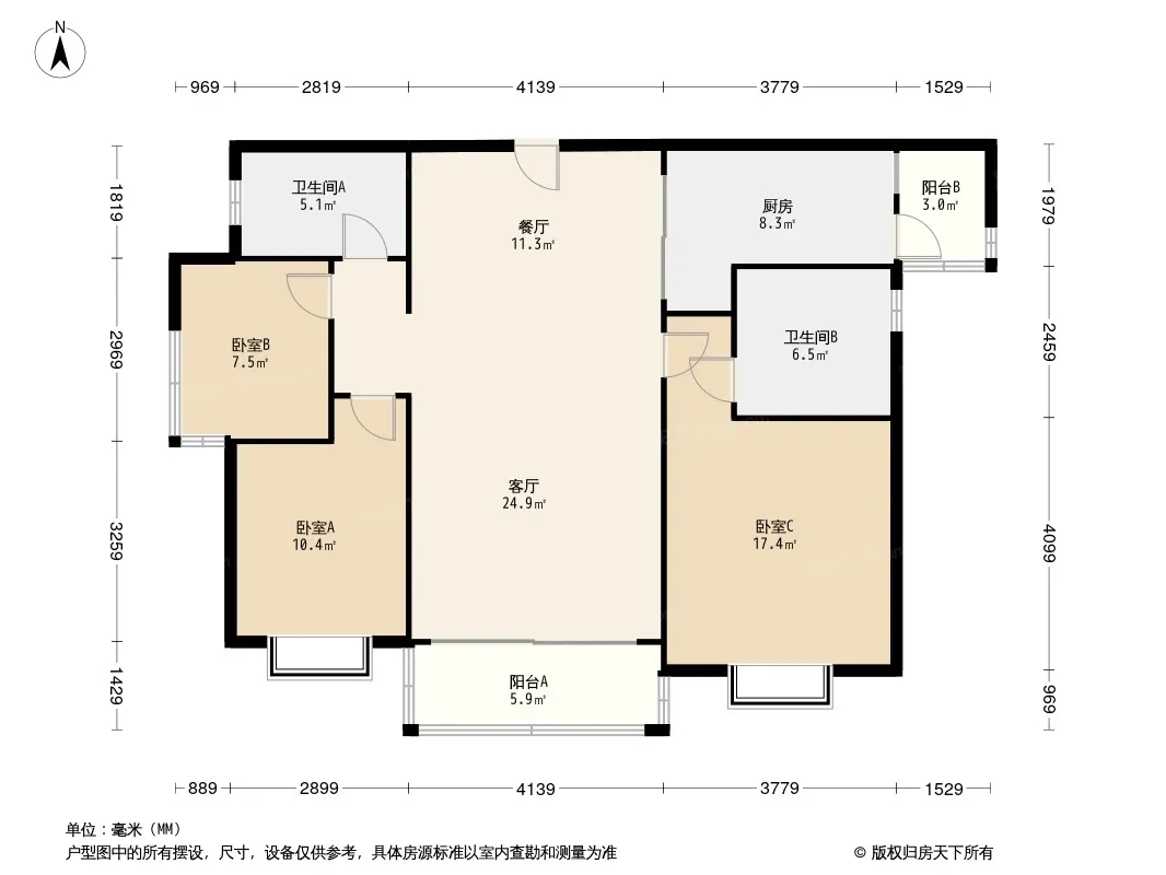 户型齐全,主打全明格局,户型方正三居