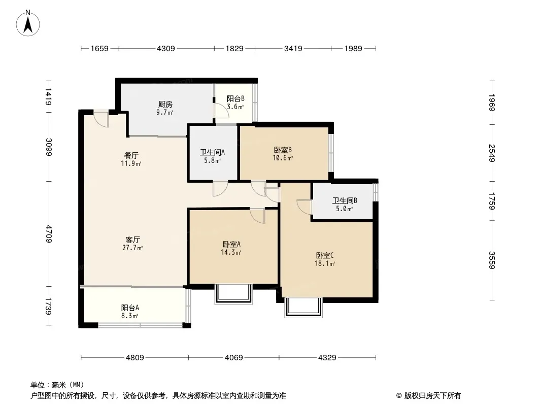 恒大御府 3室0厅 北