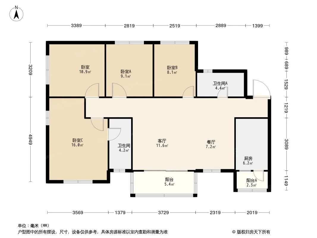 花样年香门第北区 4室2厅 南