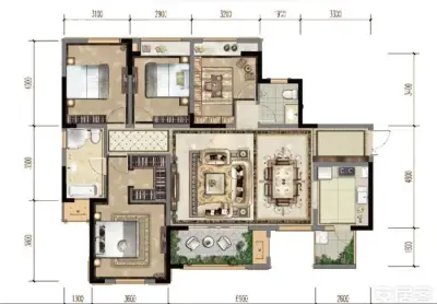 户型齐全,主打全明格局,户型方正三居