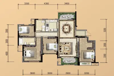 葛洲坝紫郡兰园 4室1厅 南