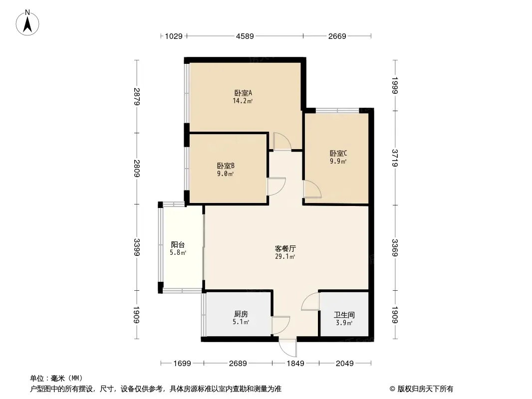 户型齐全,主打南北通透,户型方正三居