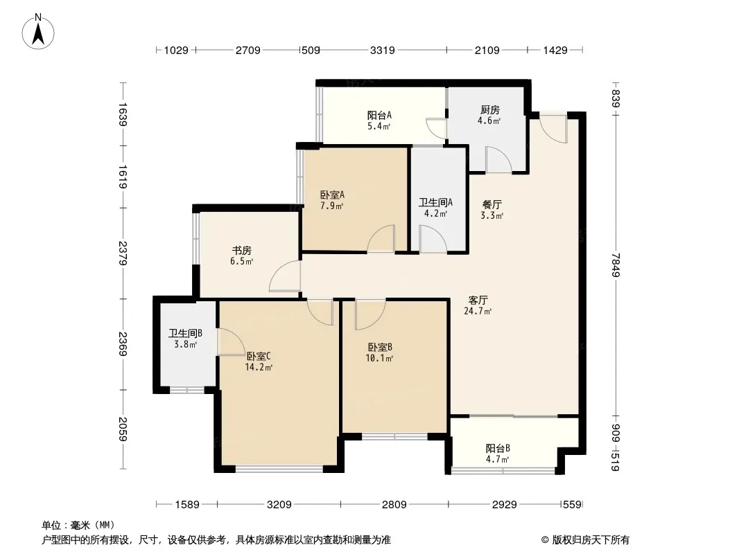 户型齐全,主打全明格局,干湿分离,双阳台三居