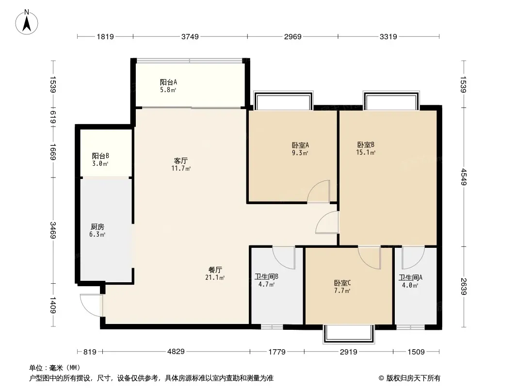 户型齐全,主打动静分离,采光充足三居