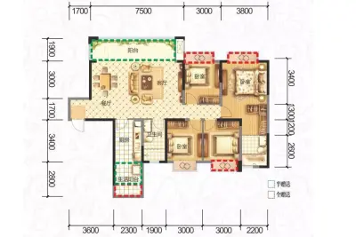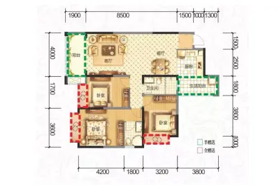户型齐全,主打动静分离,采光充足三居