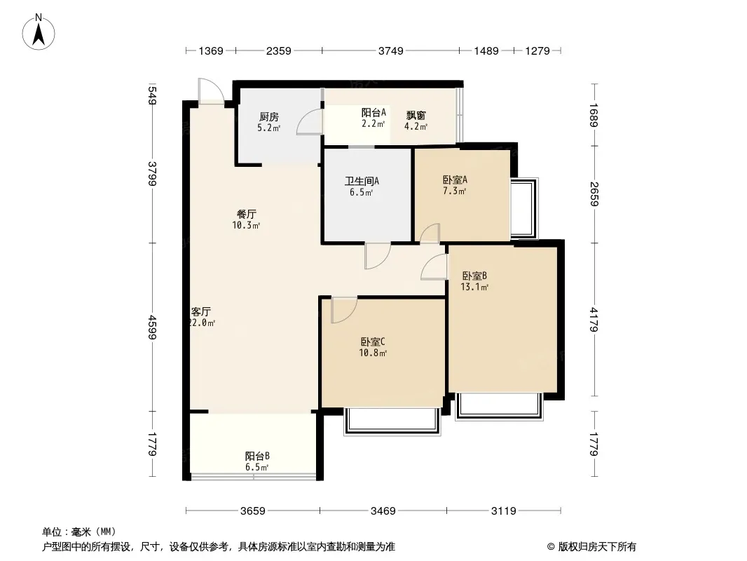 户型齐全,主打动静分离,采光充足三居