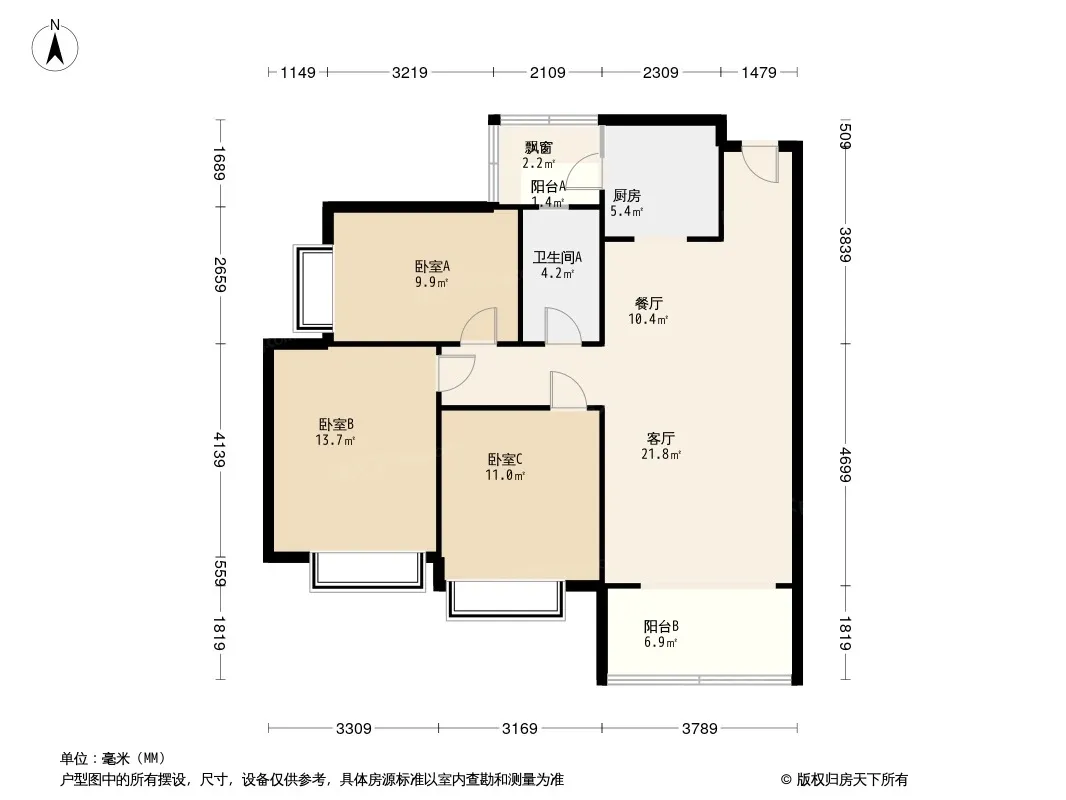 户型齐全,主打动静分离,采光充足三居
